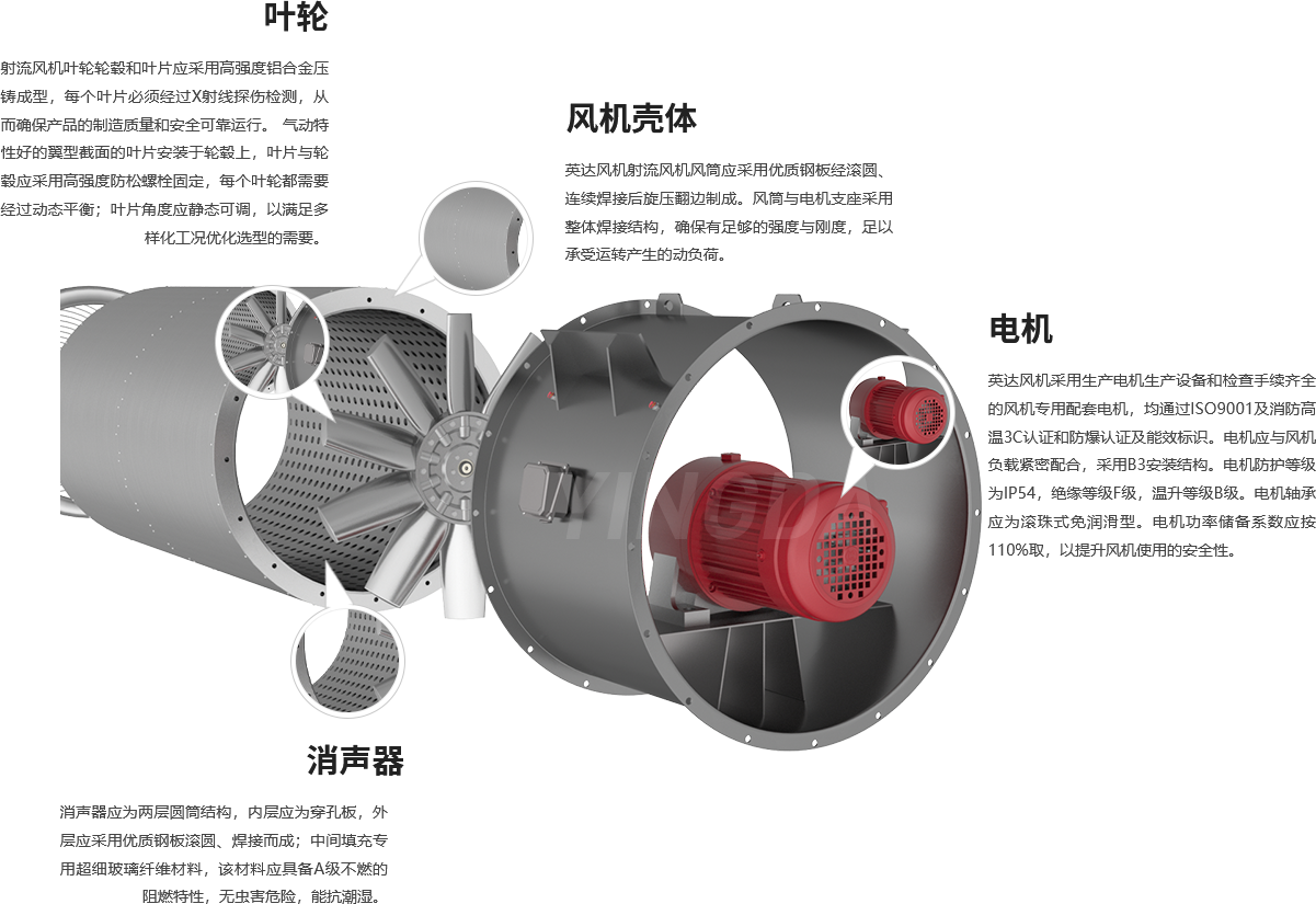 3. 按照《ISO 13350工業(yè)通風(fēng)機(jī)、射流風(fēng)機(jī)的性能試驗(yàn)》標(biāo)準(zhǔn)進(jìn)行隧道射流風(fēng)機(jī)推力測(cè)試。確保了英達(dá)產(chǎn)品 研發(fā)的高效、質(zhì)量把控的可靠,提升了技術(shù)數(shù)據(jù)的準(zhǔn)確性和真實(shí)性。生產(chǎn)制造· 工藝及設(shè)備是可靠性的保障英 達(dá)關(guān)鍵工序點(diǎn):